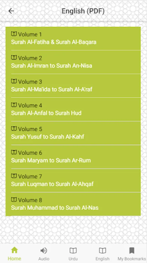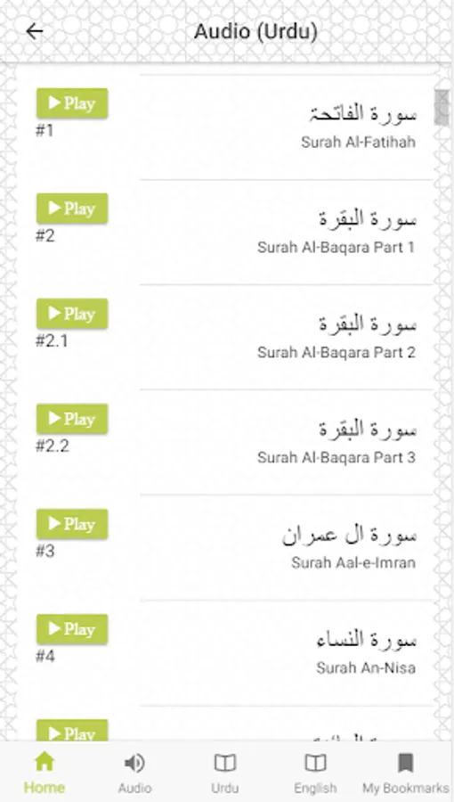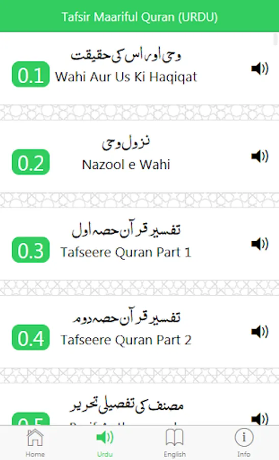 URDU audio recorded for the complete book and is categorized in Surahs/Chapters & English Content getting updated regularly on different Surah/Chapters.