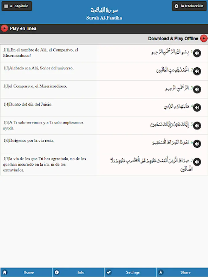 The Holy Quran application is free and contains all Sura / chapters of the Quran (القرآن) translated into many languages and sung by various reciters. Its for all who like to learn, read, understand and listen to the Holy Quran. Audio files can be downloaded and played offline. The application works perfectly offline.