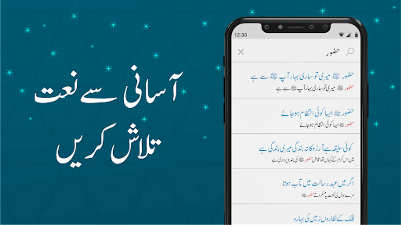 Praise of prophet Muhammad (PBUH) has been recited since nabawi regime. Using Naat Library app, a muslim can easily read naat written in form text. Naat Library is a unique app containing the highest number of famous urdu naats lyrics in urdu and punjabi. We have written all naats in form of text that can be copied and shared quickly on any social app. With 1250+ naats of different poets, we aim to add more. InshaAllah
