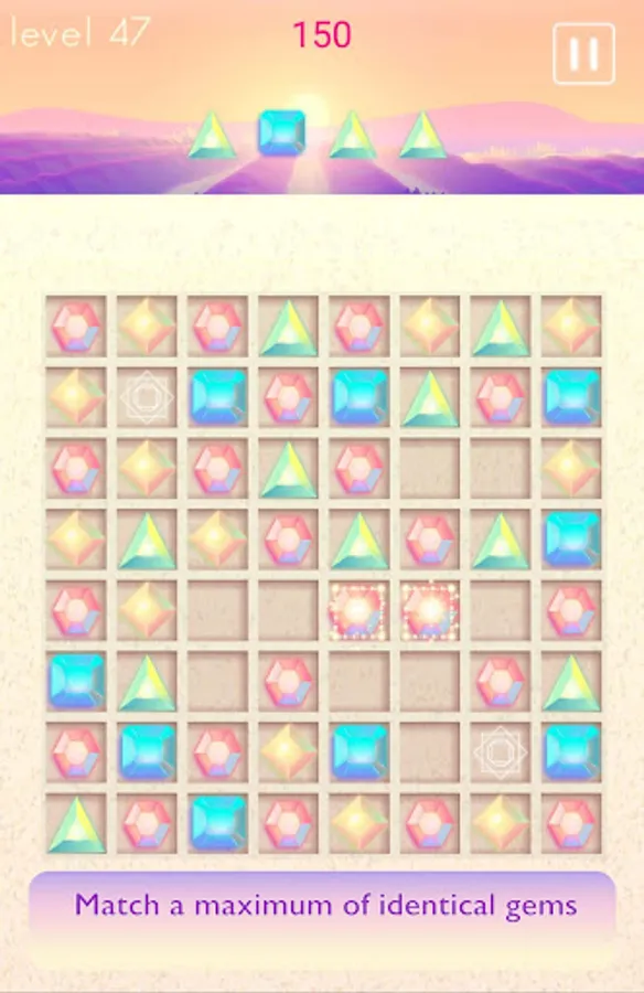 When you place your gems in the grid makes sure to match a maximum of gems between them to score a maximum of points.