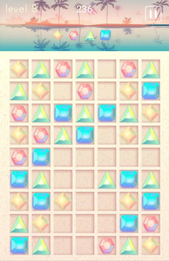 The sets and graphics of this puzzle game are made with soft and soothing colors, to bring you a moment of relaxation.