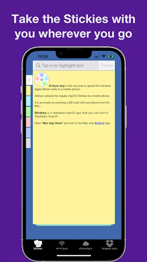 AirSync – effortless upload/synchronization of Apple Stickies to/with your mobile phones.