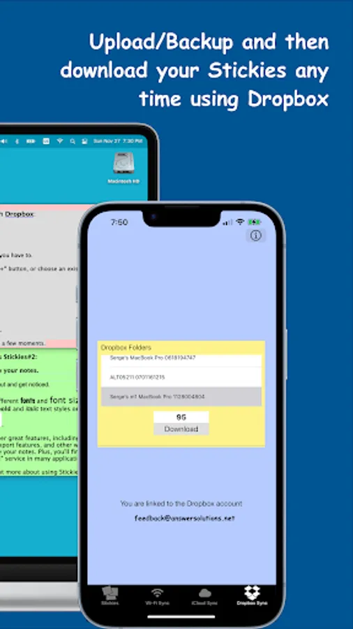 - Upload/Backup and then download your Stickies any time using Dropbox.