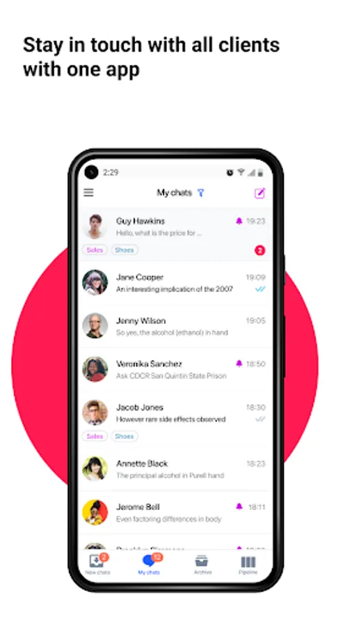 4. You're all set! Communicate with clients and distribute inquiries among your staff on the go.