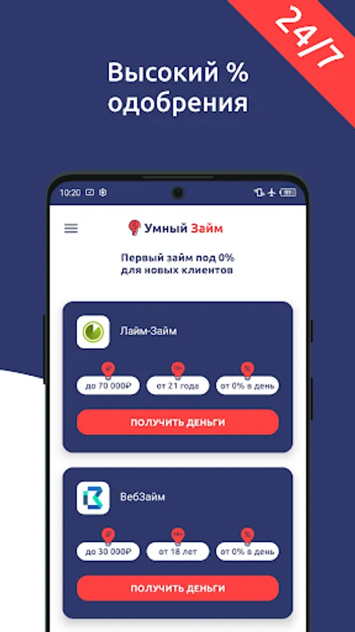 Getting loans on a card in our application is fast, convenient, profitable and safe!
