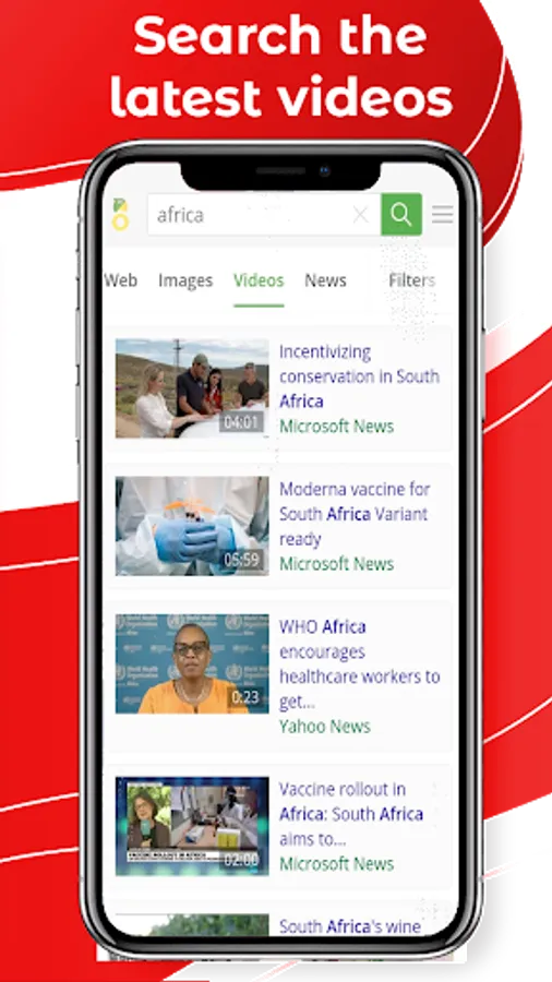 With Videos Search you can search on the web or specific sites, filters like Duration, Quality, or Period will help you find the video you’re looking for.
