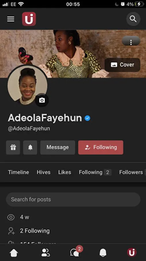 The most important desktop features of Umojami are also available on the app, such as writing on timelines, liking photos, browsing for creators, and editing your profile and hives.
