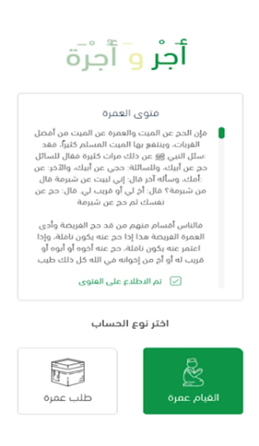 أَجْرْ وَأُجْرَة هو تطبيق يمكّن المسلمين من خارج المملكة العربية السعودية من طلب عمرة نيابةً عن أي أشخاص متوفين أو عاجزين عن أداءها، ليقوم بها أشخاص من مكة المكرمة بمواعيد محددة