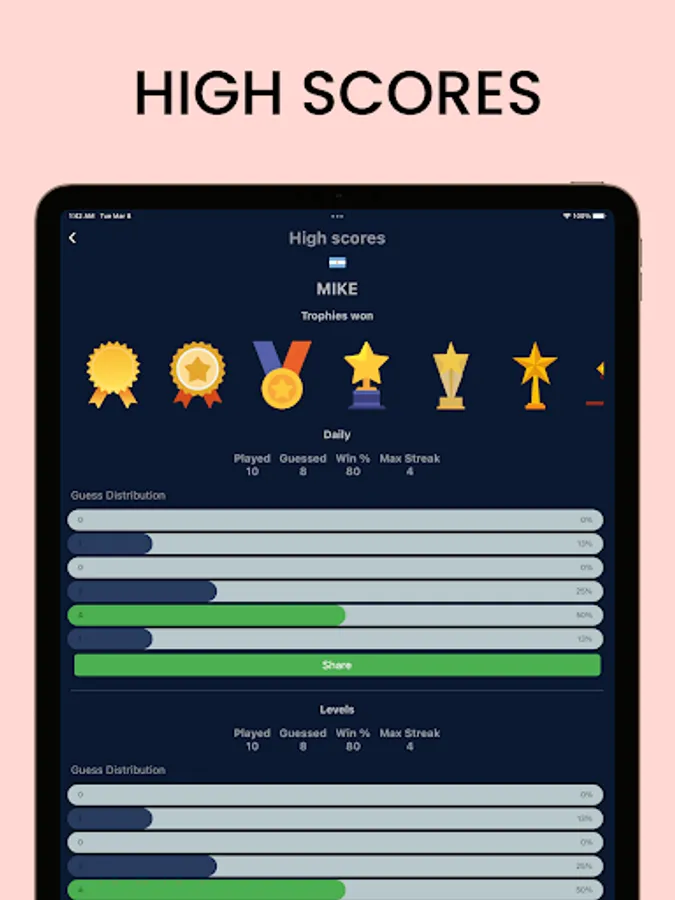 You can also share your results with your friends and see their scores and yours on leaderboards to make it competitive.