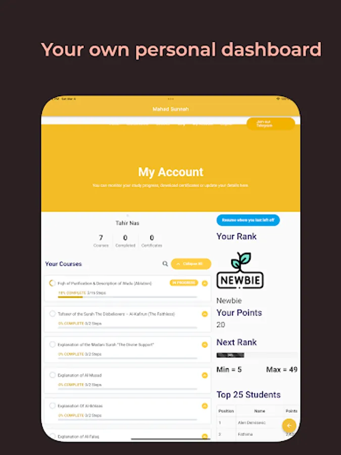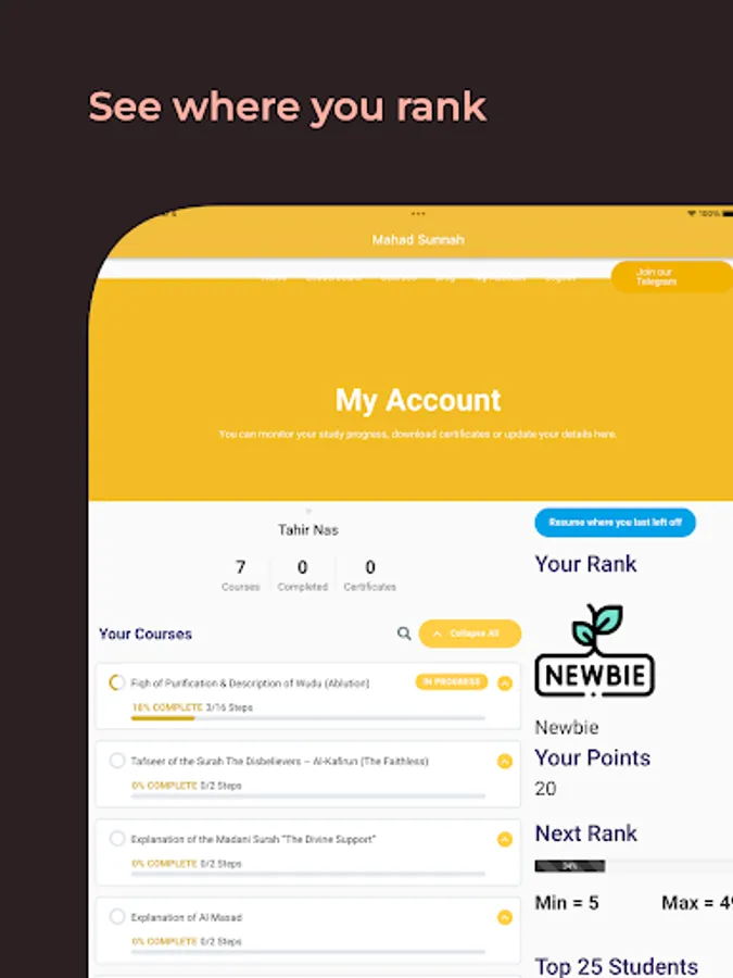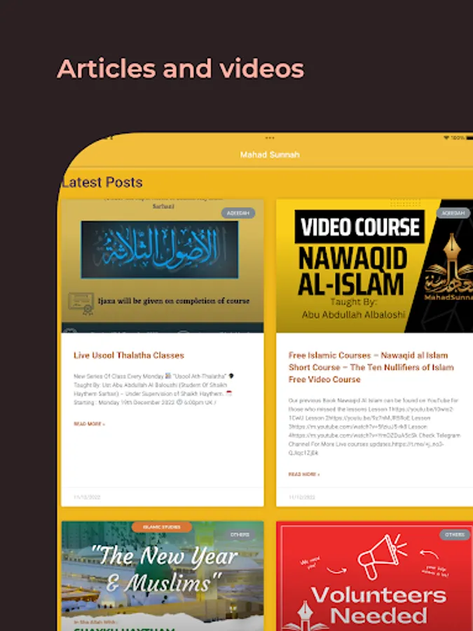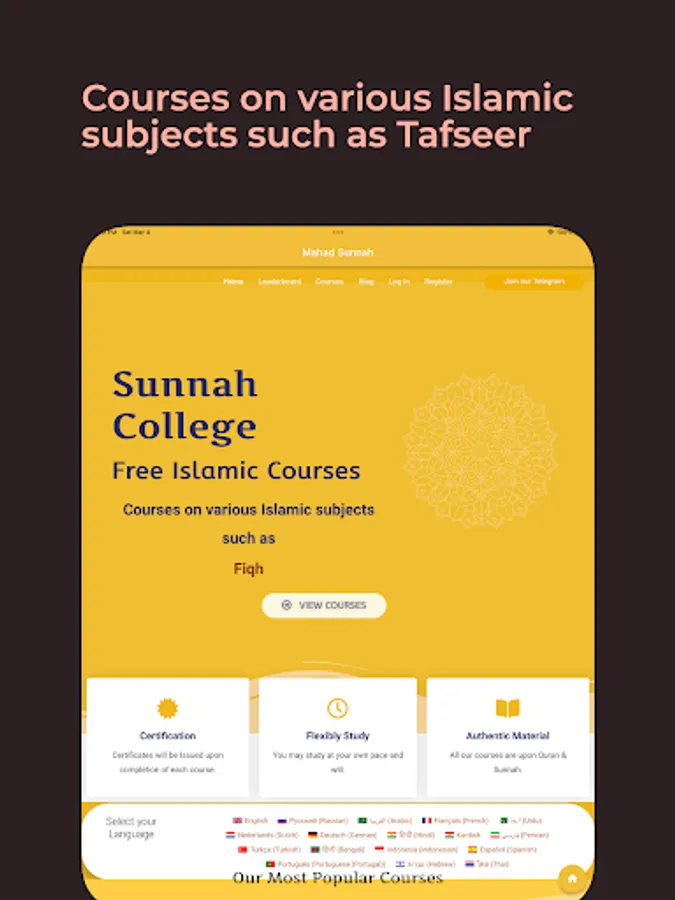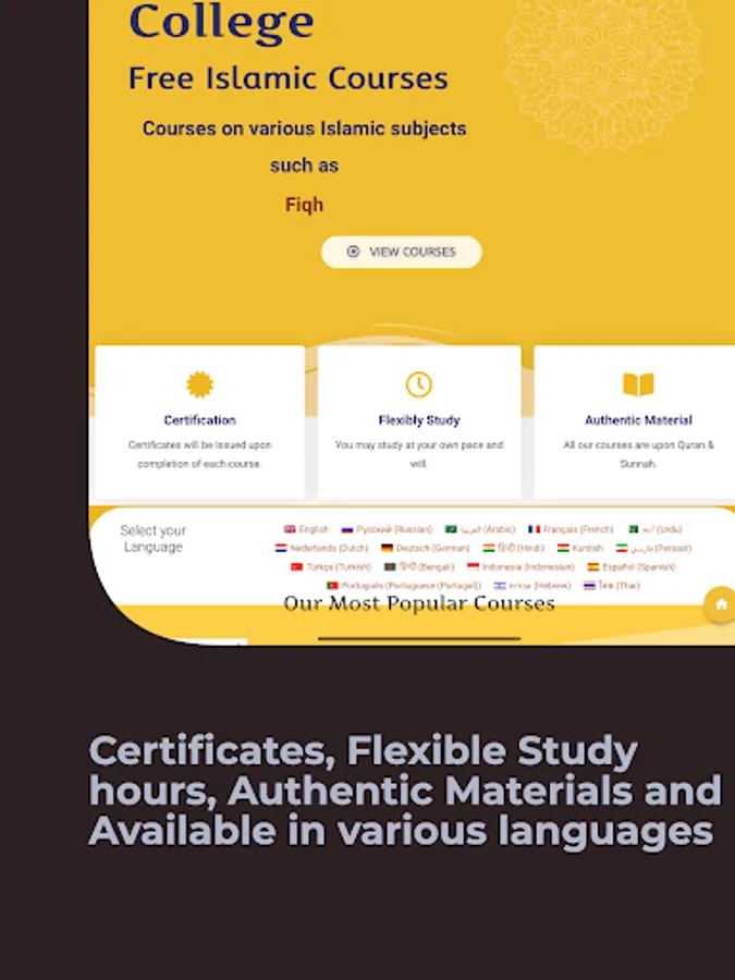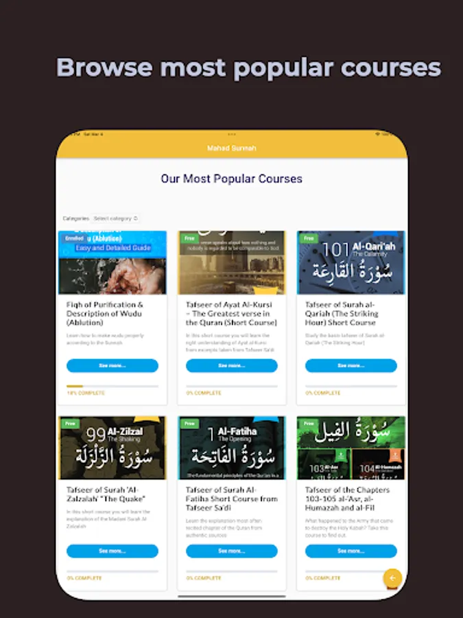 Courses on various Islamic subjects such as