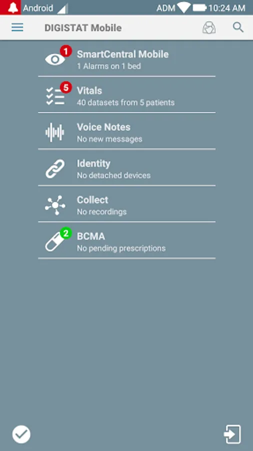 Digistat Mobile provides a wide set of functionalities to support the daily work of healthcare professionals. With the application clinicians can document their daily activities, receive event notifications and reminders, visualize data received from bedside medical devices including alarm notifications.