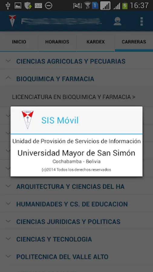 This application provides access to academic and biographical information for students of the Universidad Mayor de San Simón and includes the following services: