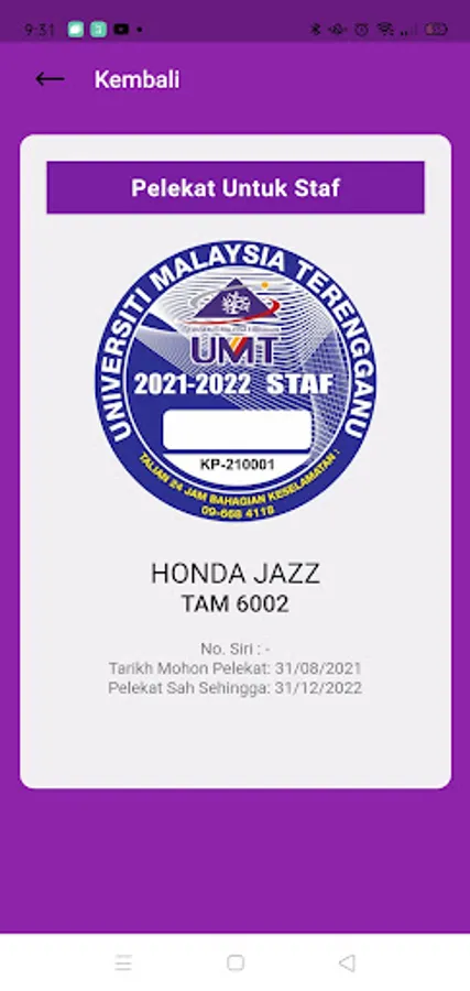 eSticker is a mobile application allow UMT's staff to check their car's sticker status, application and compound status. eSticker is develop by Universiti Malaysia Terengganu