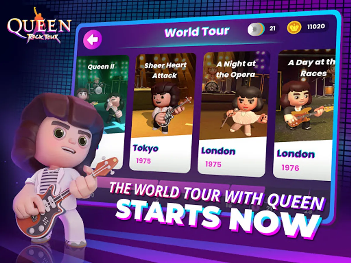 Embark on a musical journey to rediscover the story of Queen, the world’s most iconic rock band. Play their greatest hits at historic venues, create your own stage performances with unique animations and legendary outfits, and collect exclusive images from the official archives of Queen!