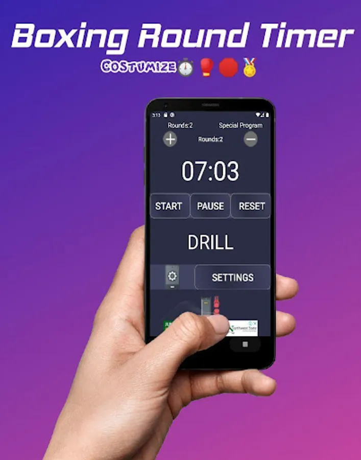 First of all, if you want, you have the option of working as a professional boxing for 3 minutes and 1 minute rest between each round, or you can customize it if you want.