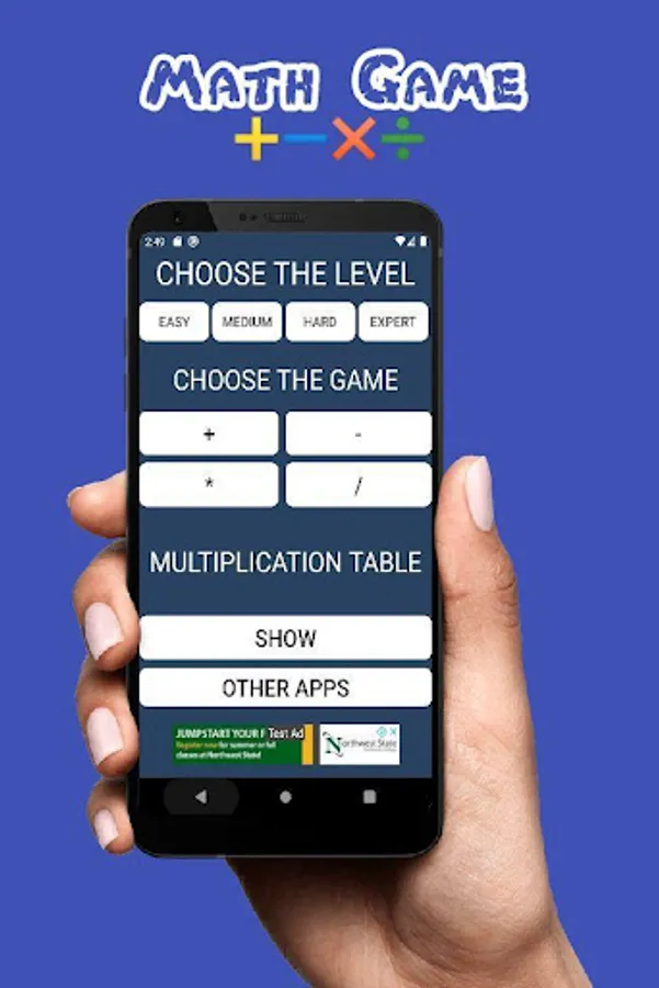 Thanks to the math game application, you can play 4 different difficulty trading games and improve your mathematics.