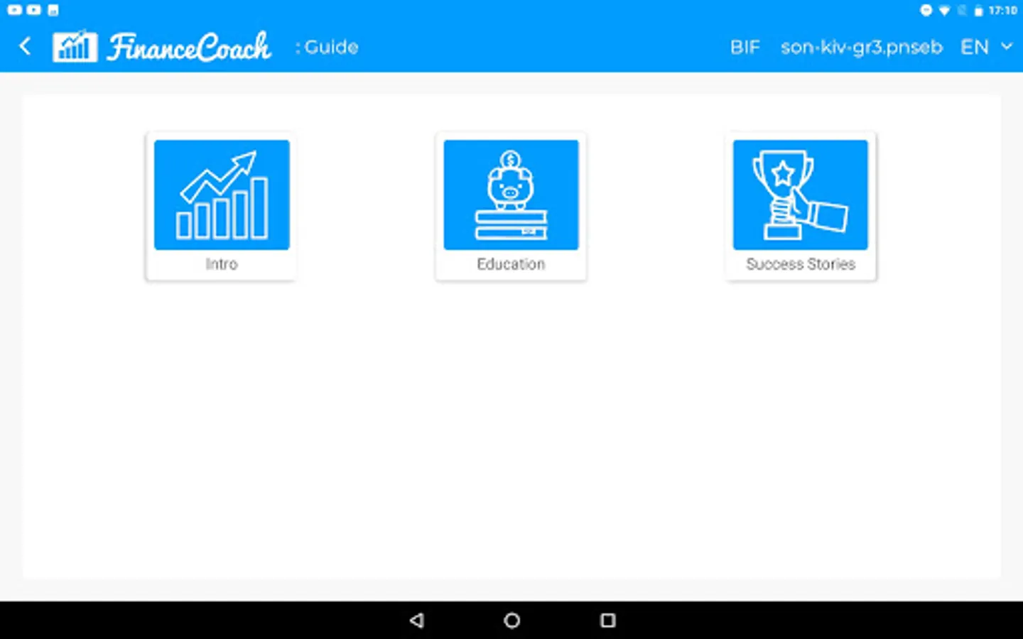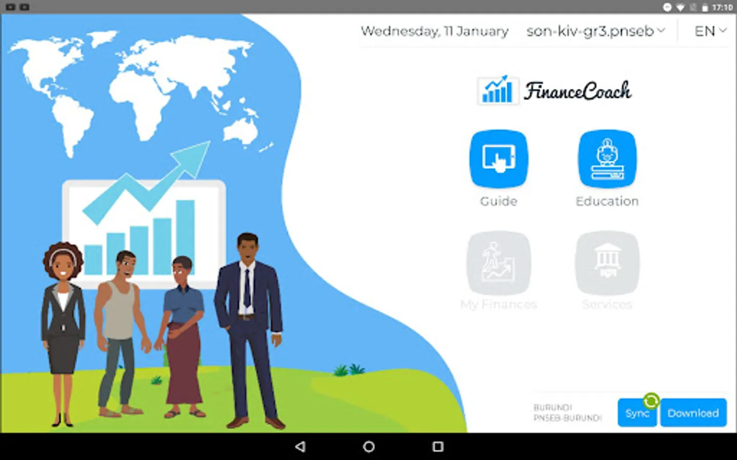 The FinanceCoach is an application that helps users improve their personal finances by increasing their knowledge of financial concepts and products, teaching them how to gain insight and manage their finances in order to achieve their goals and have healthy finances, and improving access to financial services. It features teaching about financial concepts and services through movies, providing insight into the user's current financial situation, assisting in goal-setting and creating financial plans, and providing information about and access to available financial services. Initially designed for the Burundian market, the app is available in Kirundi and future versions will include more countries and languages.