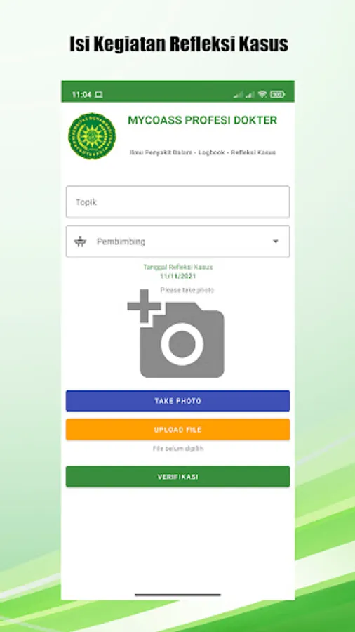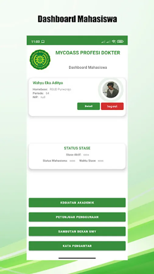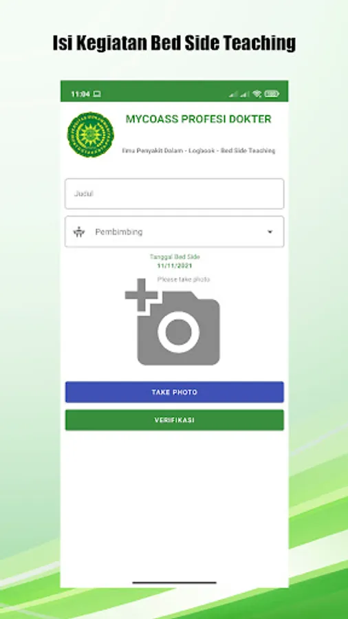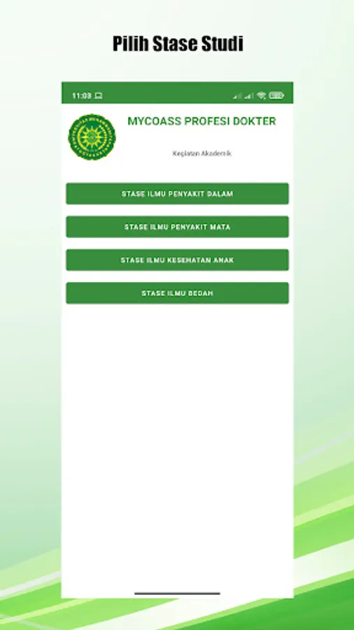The main function of the application is as an Elogbook of student activities, where students can fill in Koas activities according to the status that is being run, after filling in the data according to the provisions of the activity, students can submit verification and assessment of activities to the supporting lecturer through the application.