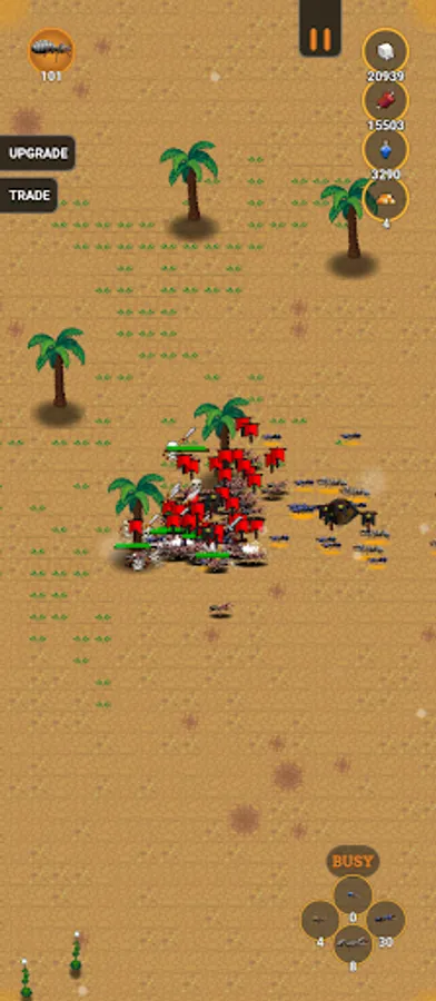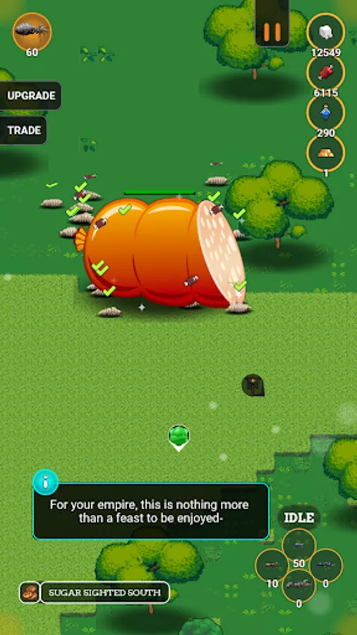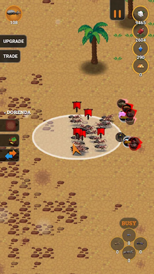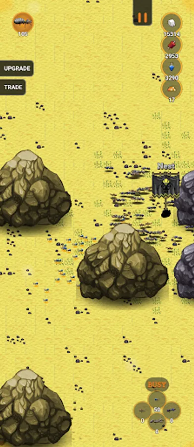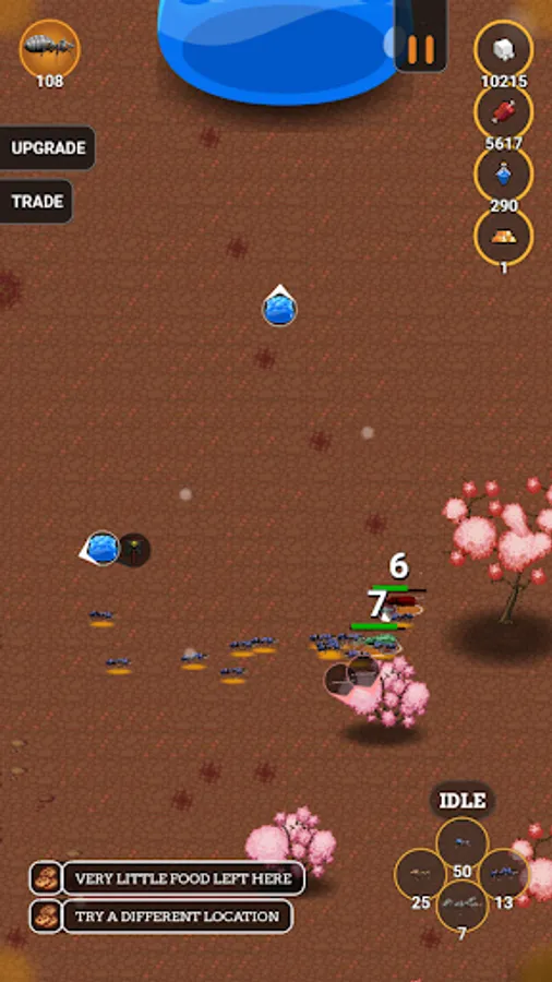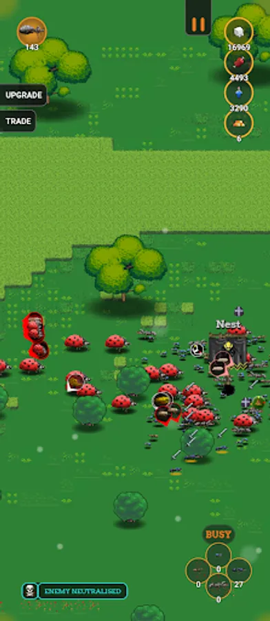 Upgrade your ants to make them stronger, faster and better. Also upgrade your resources and trade in the resources you find if you have a surplus.