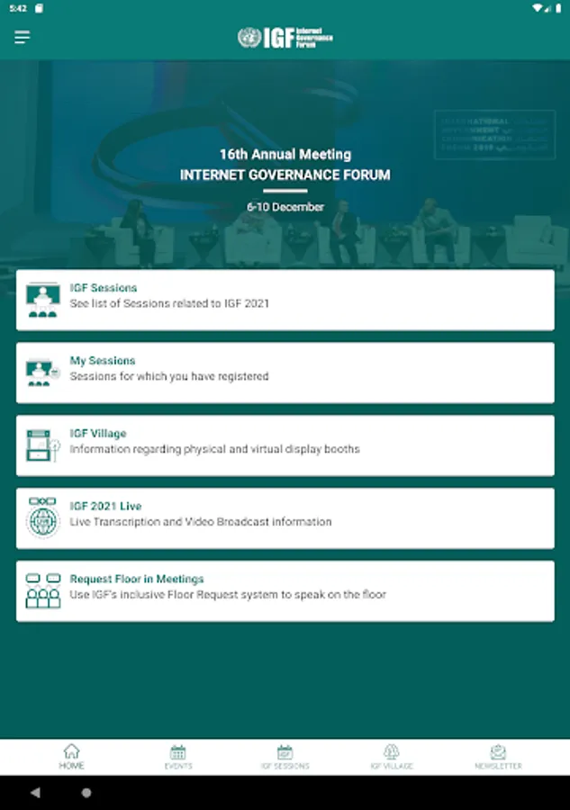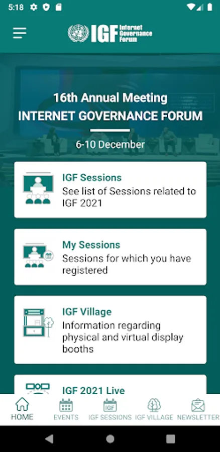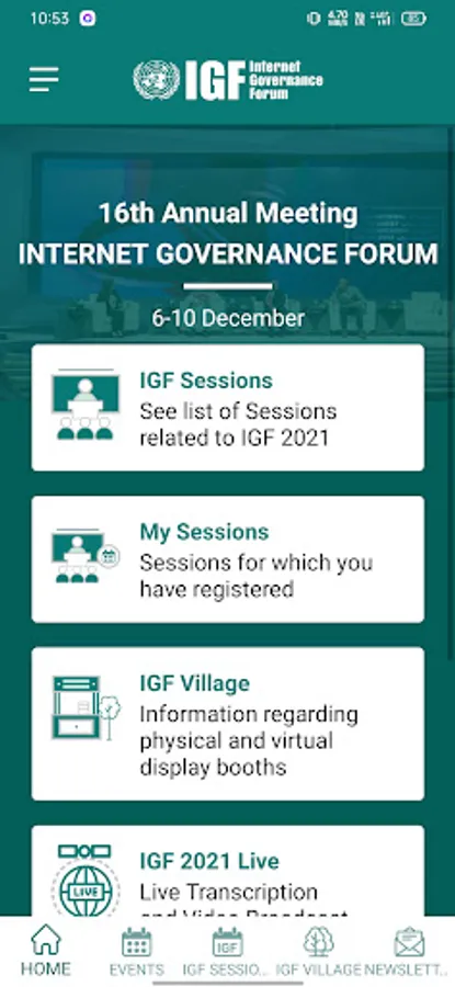 UN IGF allows to check-in for IGF sessions and events, attend the IGF Village, as well as to get notifications, transcripts, videos and reports.