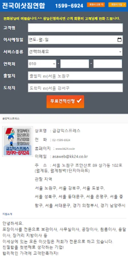 National Association of Moving Centers - Packing and moving one-room estimate Free price comparison Officetel Office home storage recommended company!!