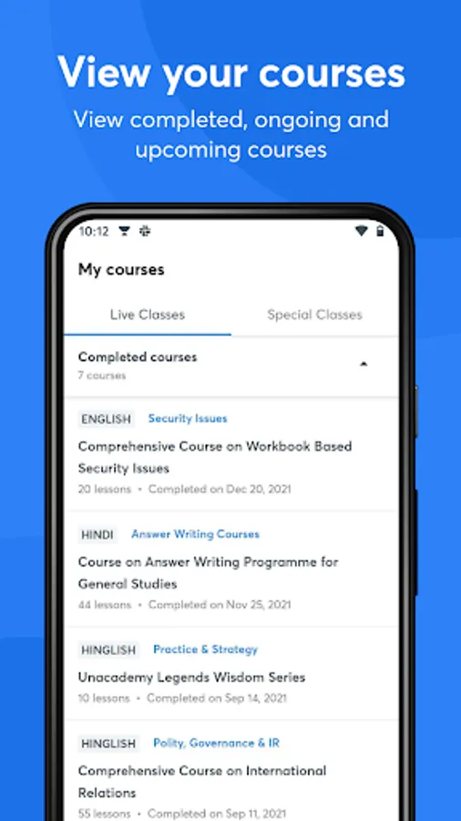 📖 Your courses: View completed, ongoing and upcoming courses on your App. You can also schedule and conduct special classes on the go.