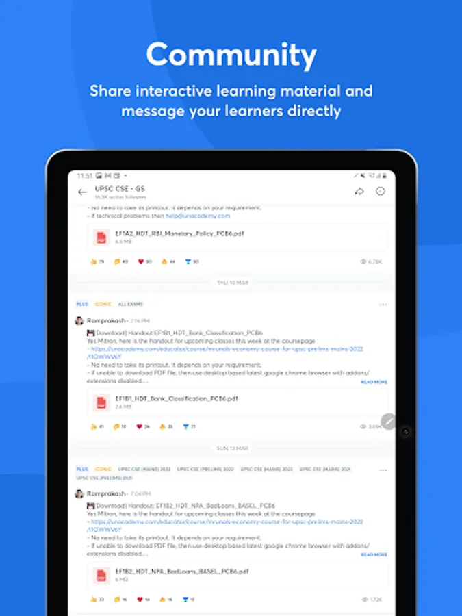 💬 Community: Easy and quick way to share learning materials, tips, updates, and more with learners directly from the App. Make your interactions more engaging with polls and quizzes.