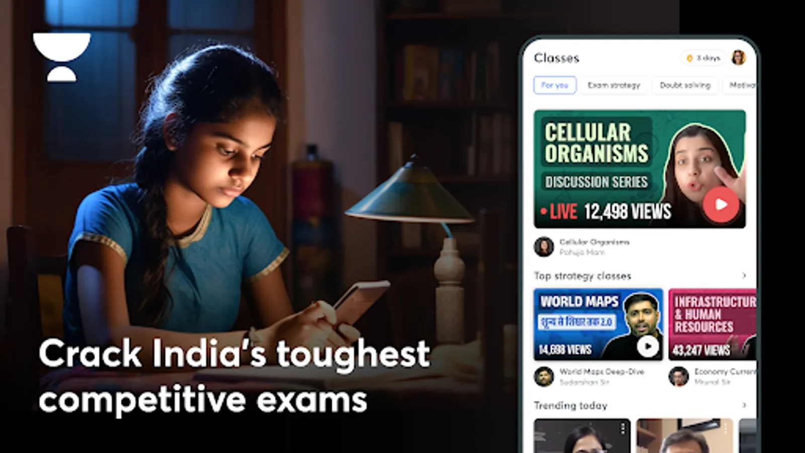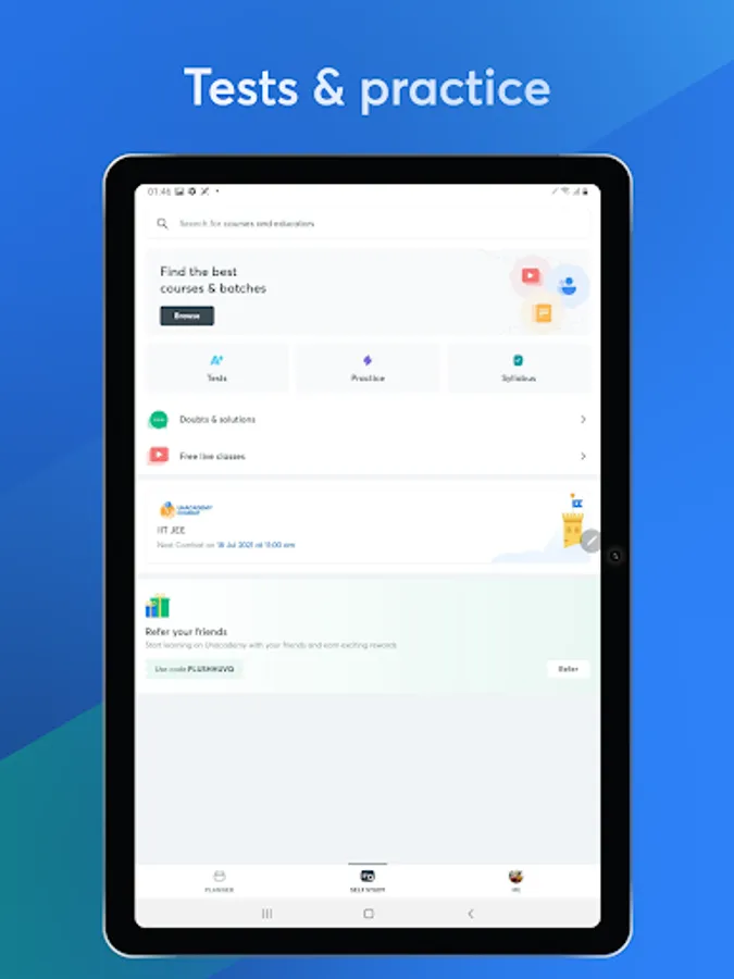 The Unacademy App enables you to get unlimited access to Courses, Live Classes, Mock Tests, Quizzes and more.