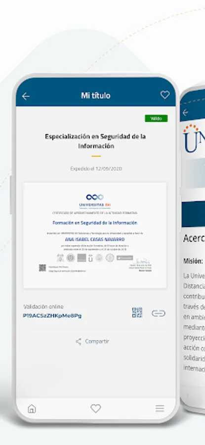 Consultation, validation and online verification and sharing of your titles, degree certificates and digitally signed diplomas.