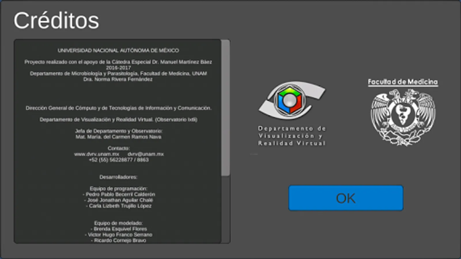 Project with the support of the Special Chair Dr. Manuel Martinez Baez 2016-2017, School of Medicine, National Autonomous University of Mexico and the Department of Visualization and Virtual Reality, Department of Computing and Information Technology and Communication.