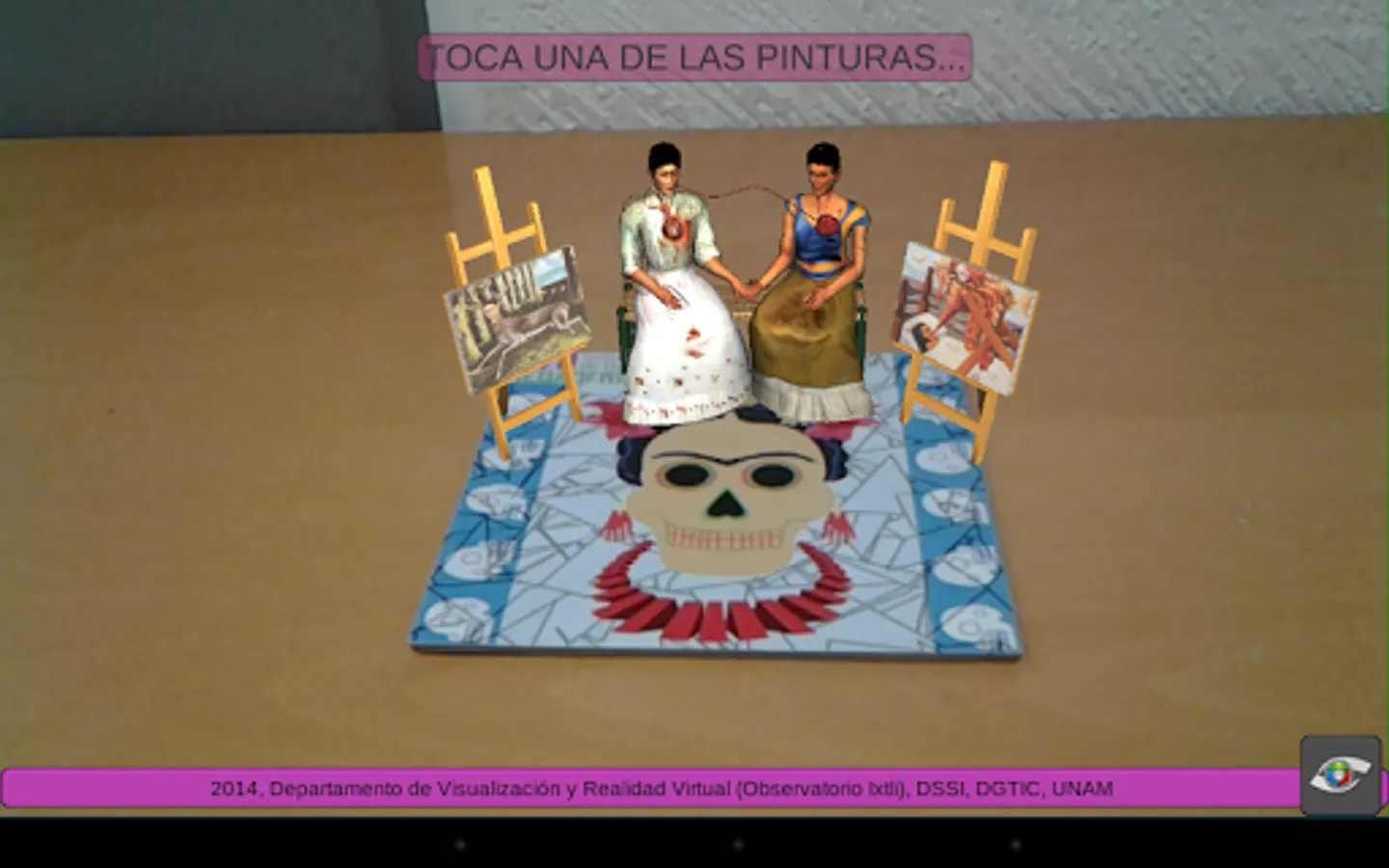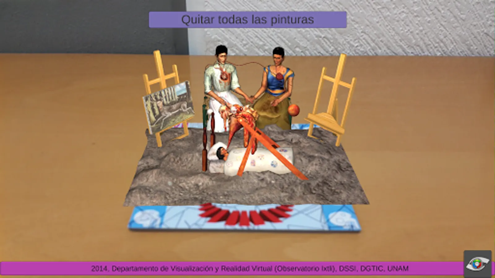 Download the application and visit us at the mega offerings of the UNAM. With it you will be able to see 3D representations of some Frida Kahlo paintings