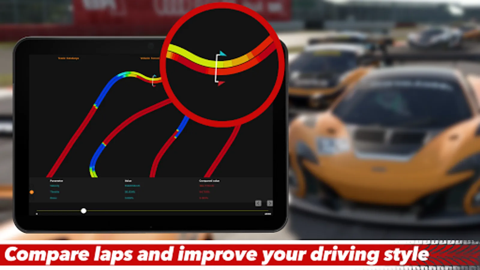 - Sharing: share your telemetries with other users and compare your laps with the ones from your friends. Used with the "comparison" feature, this is the best tool to improve your skills.