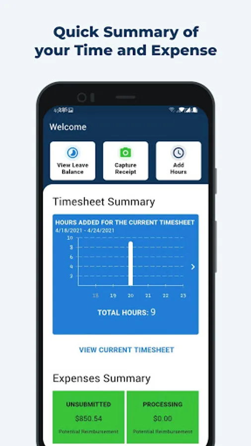Our new mobile app brings modern design and ease of use to daily timekeeping and expense report tracking for your government contracts. You can now easily, quickly, and securely: