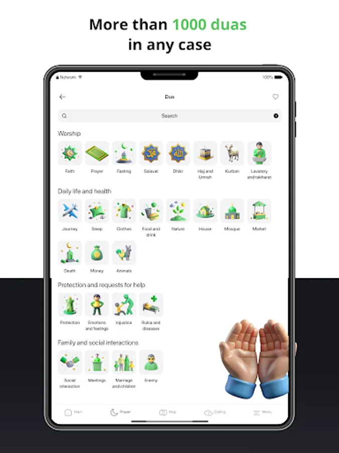 - Dua and Azkar Library: Access a comprehensive list of Duas and Azkar to enhance your worship. Each prayer comes with translations to help you understand their significance.