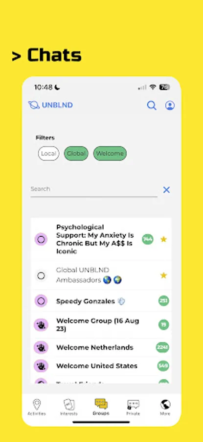 UNBLND is a global 🌍 social community based on interests building authentic connections through meaningful group experiences
