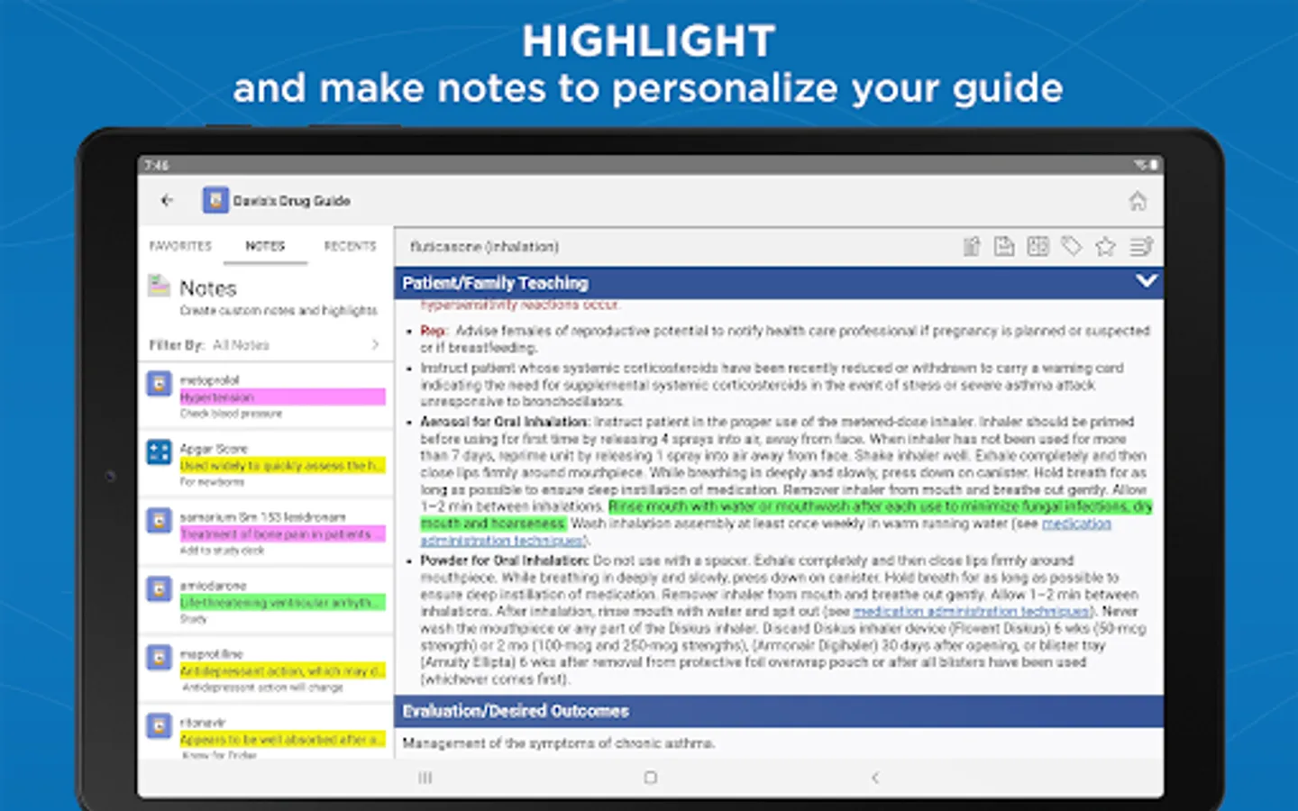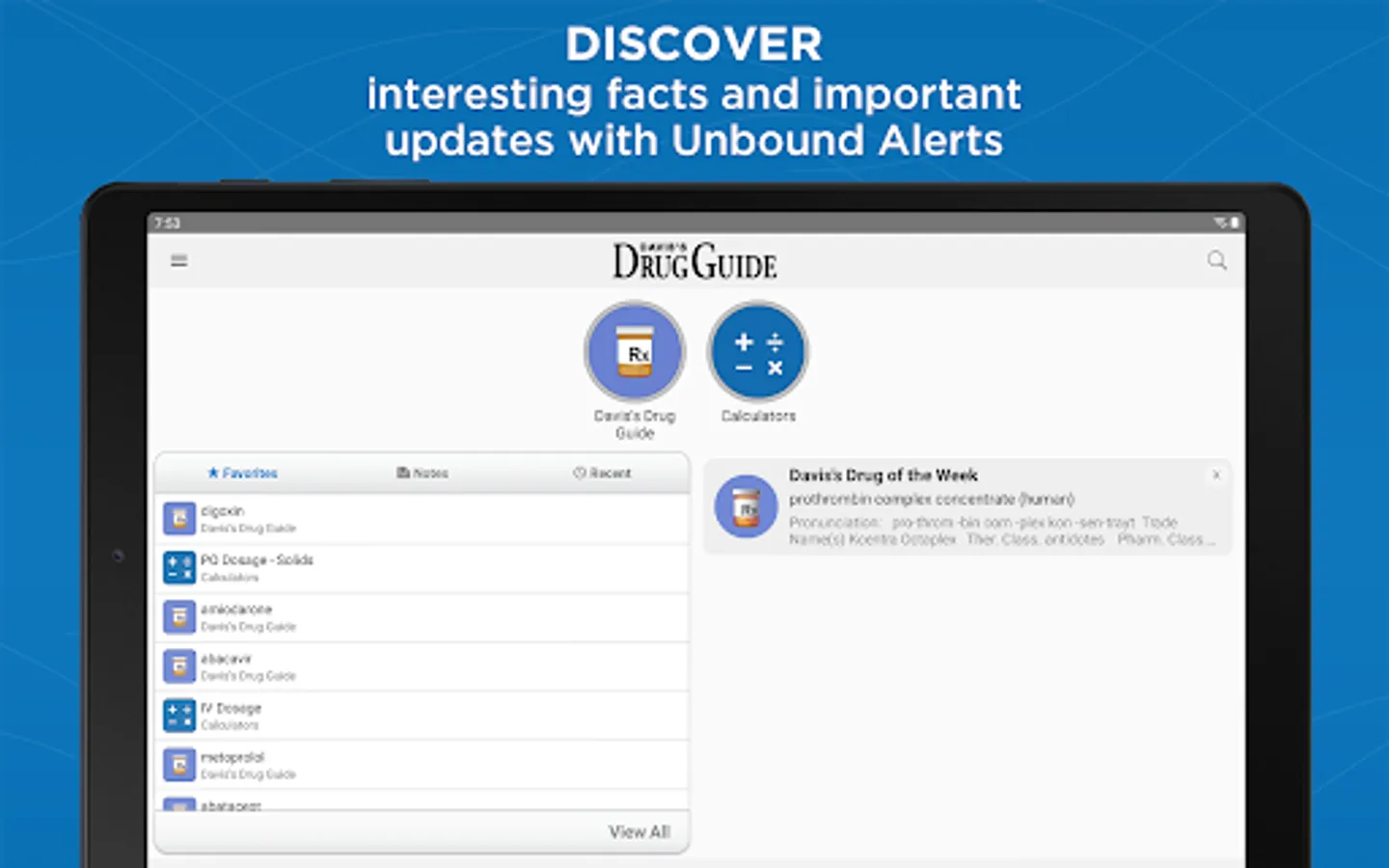 • Alerts communication feature that delivers the latest information about Davis's Drug Guide as well as 'Drug of the Week'