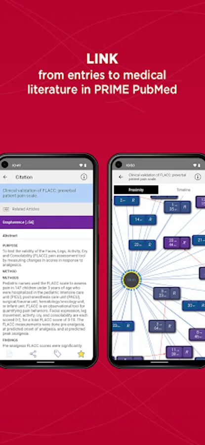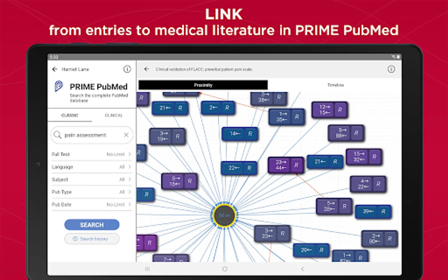 Quickly search journal articles from the full PubMed database on your smartphone and tablet. Results contain abstracts, citations, and links to available full text articles that can be read on device and shared with classmates and colleagues. Additionally, Prime contains Grapherence™, an exclusive way to visually explore interrelationships and relevance in the medical literature.