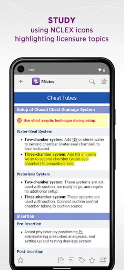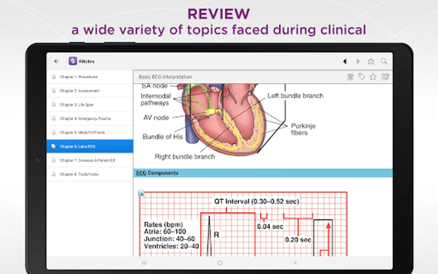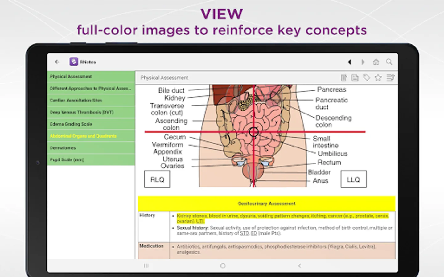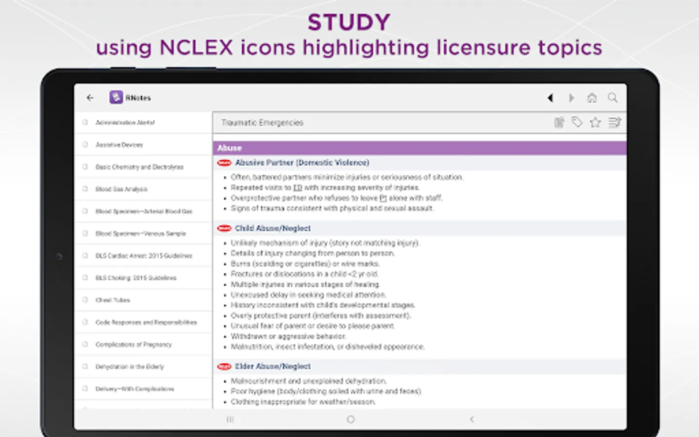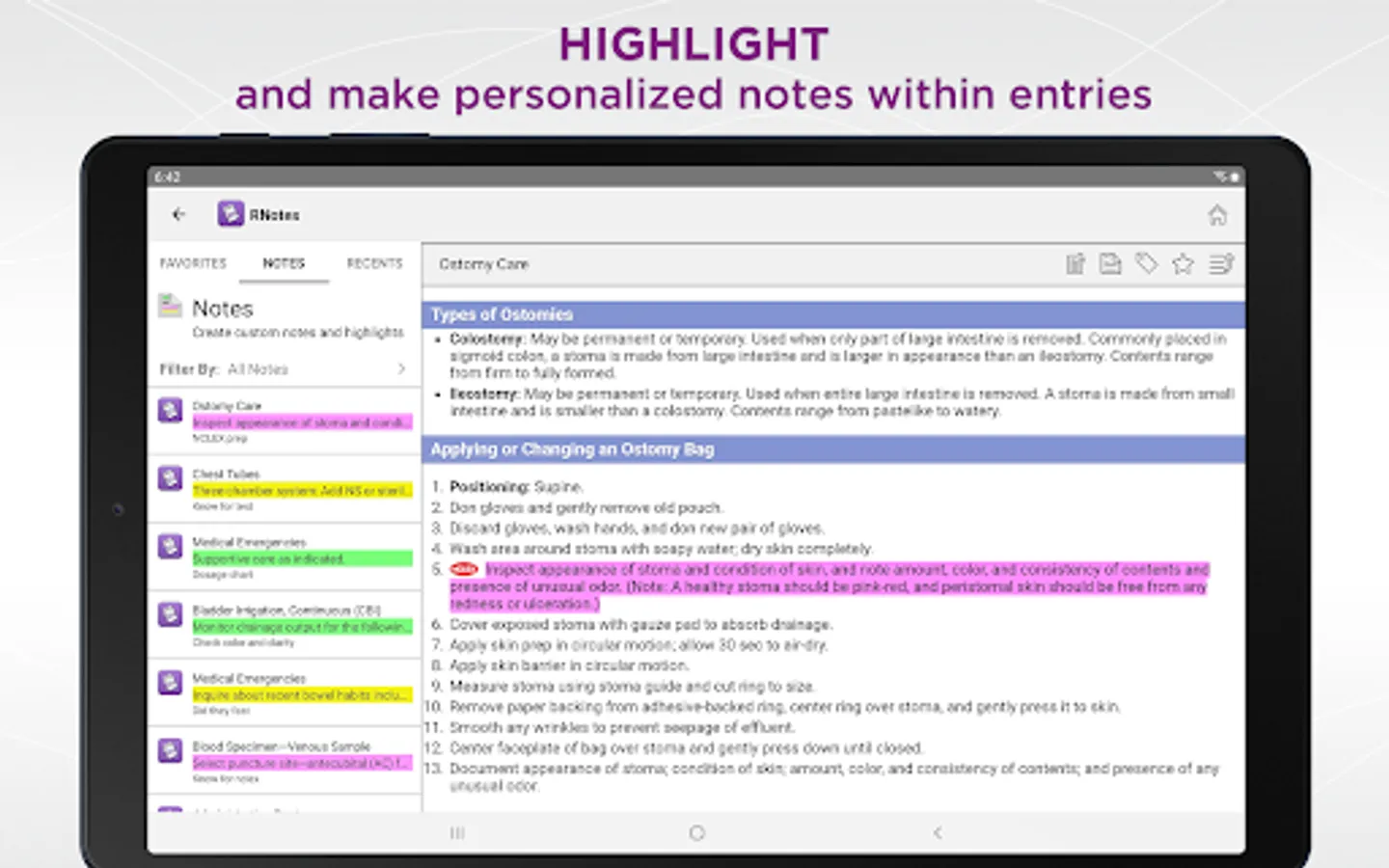 RNotes is a quick-reference application that puts the latest clinically-focused nursing information at your fingertips, helping you improve patient care. Find answers fast by browsing or searching, then review clinical findings, collaborative management, and quick-read information along with full-color images and charts. The latest edition also helps students prepare for the NCLEX examinations by noting topics that are covered on the exam.