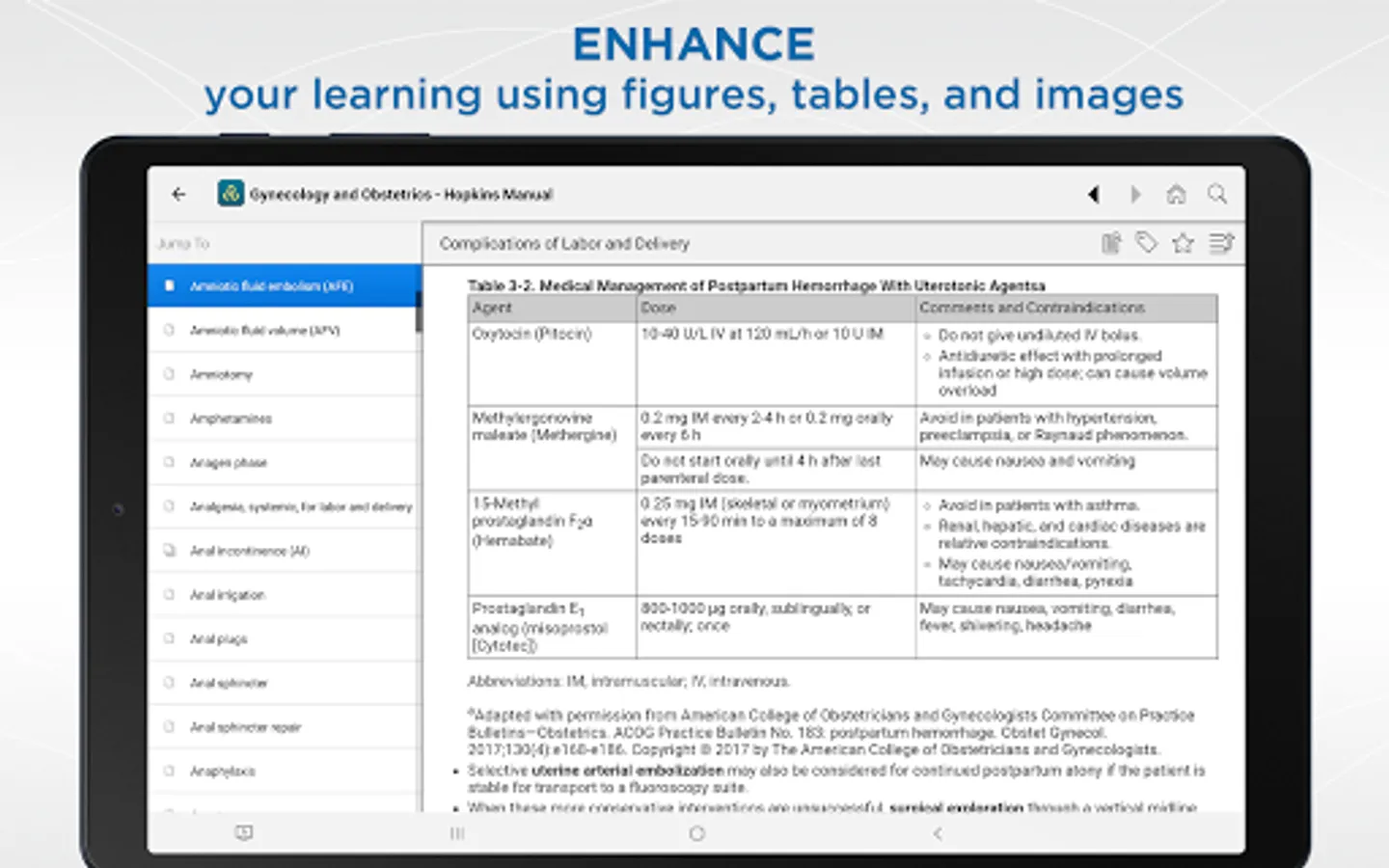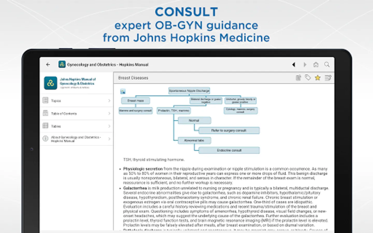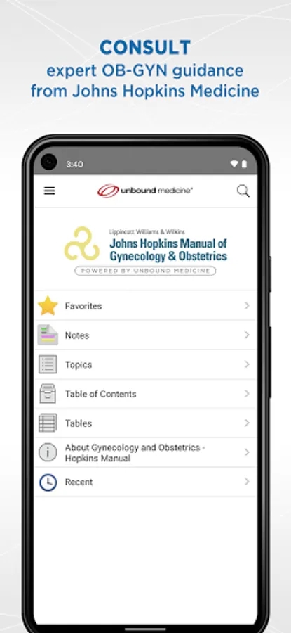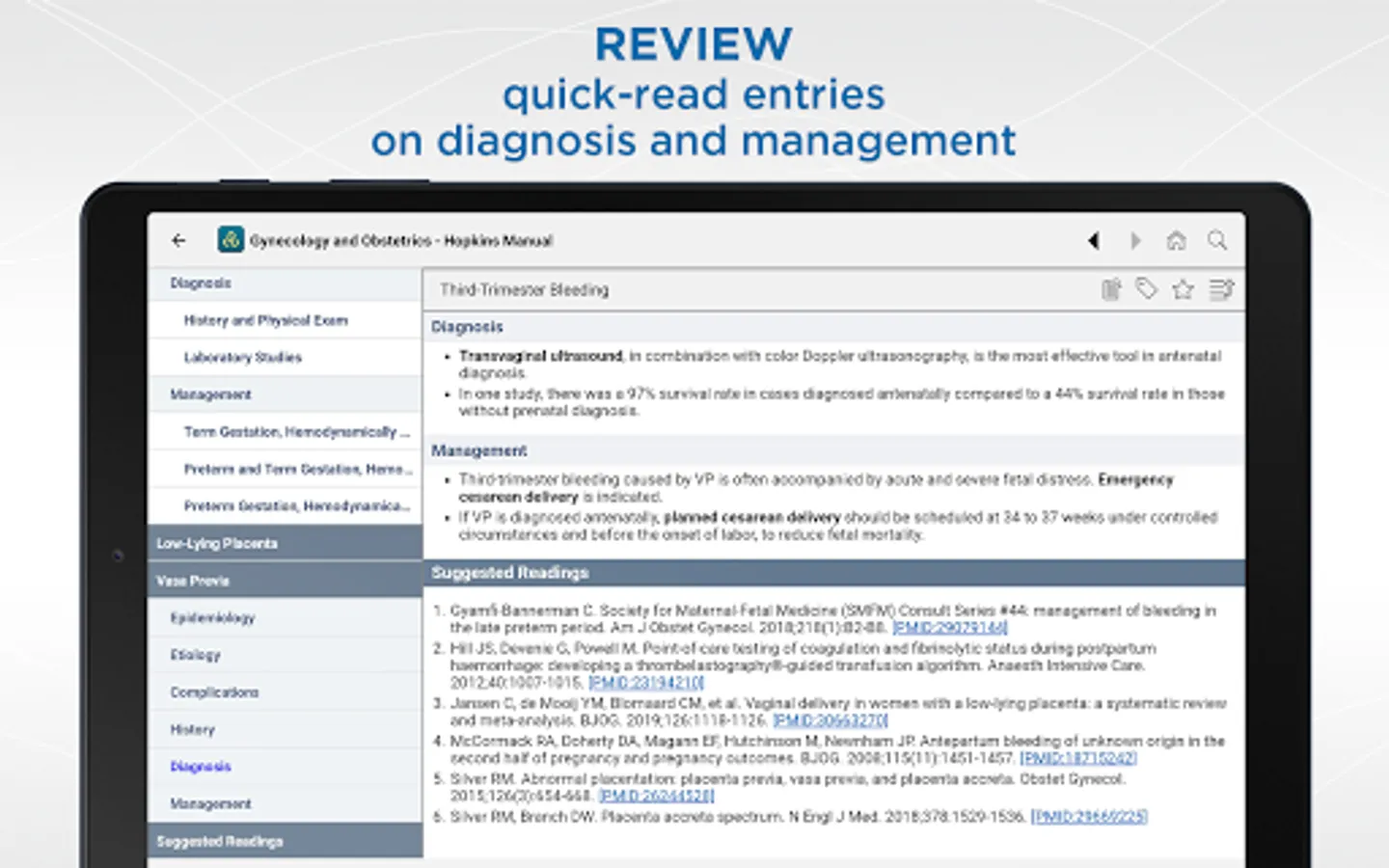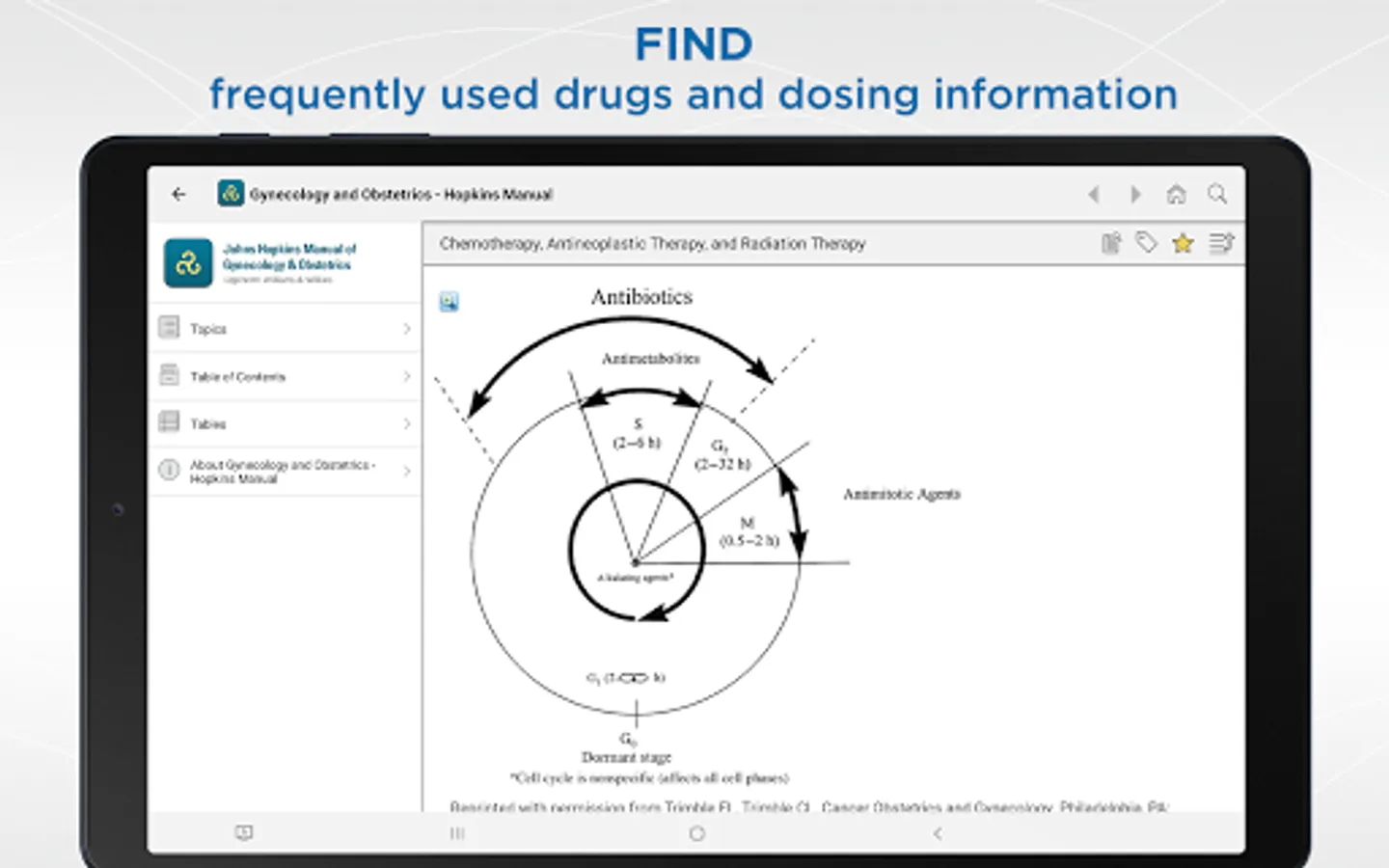 The Gynecology and Obstetrics - Johns Hopkins Manual provides on-the-spot answers to obstetrical and gynecological questions faced by students, residents, and clinicians. This trusted, comprehensive mobile resource includes basic and high-risk obstetrics, reproductive endocrinology and infertility, and a full range of gynecologic diseases and oncology. Extensive use of detailed figures and tables throughout the app enhance the user experience and clarify difficult topics.