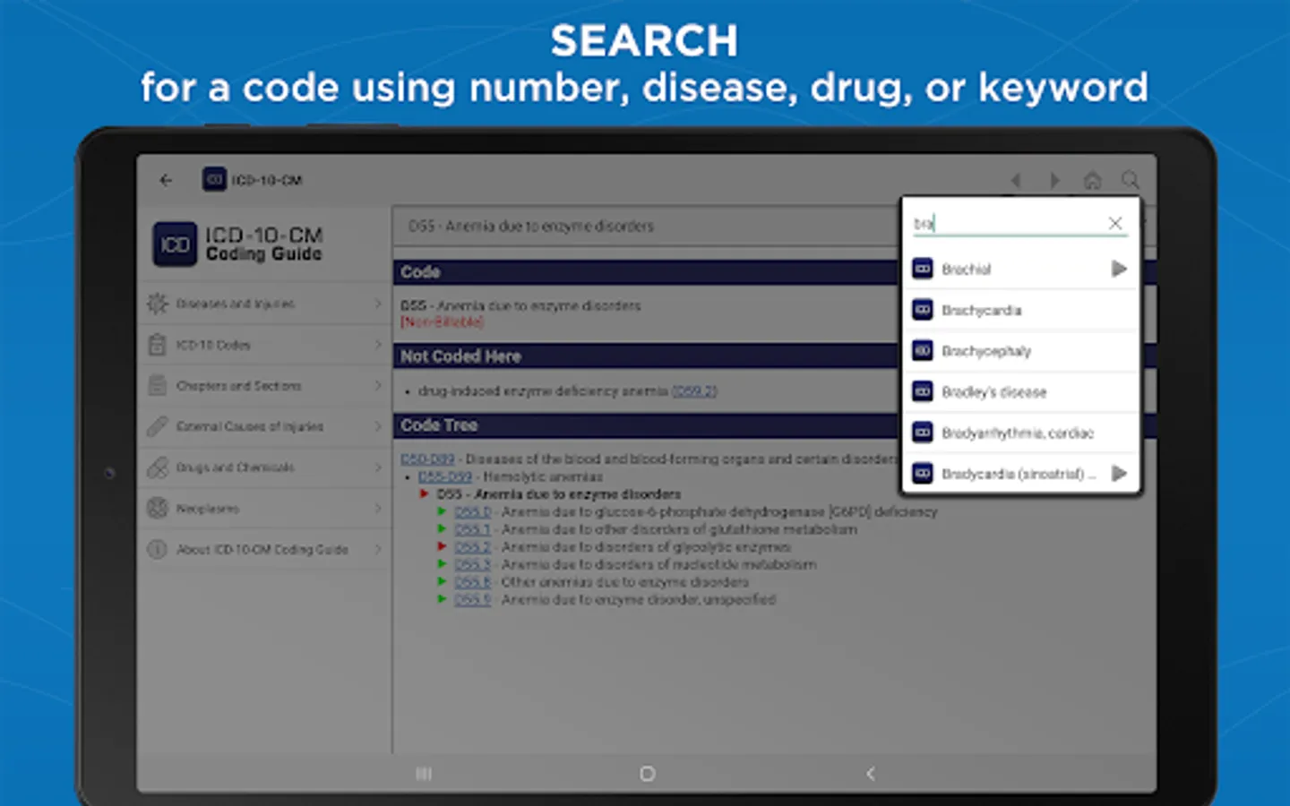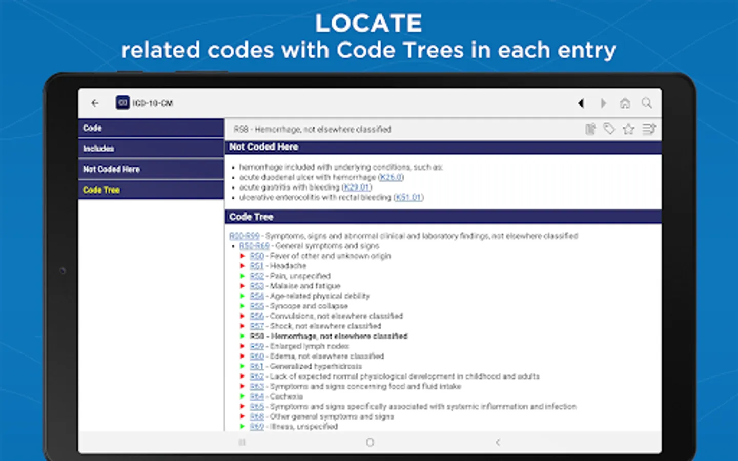 Featuring the latest ICD-10-CM data from the Centers for Medicare and Medicaid Services (CMS), this premium app helps you quickly identify the most appropriate code on your smartphone or tablet — with rapid search by code, disease, injury, drug, or keyword.