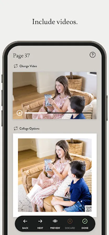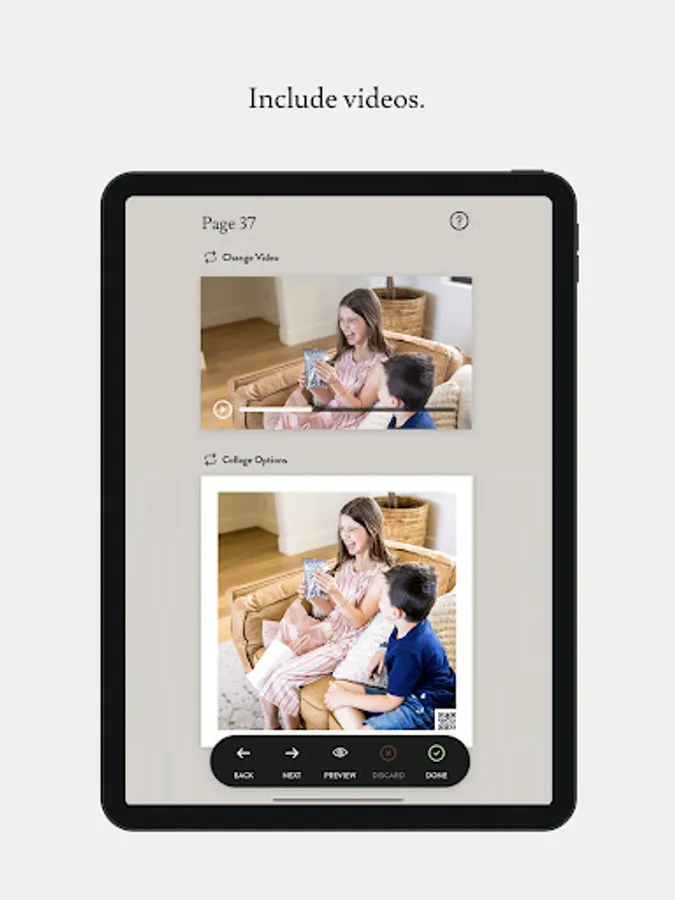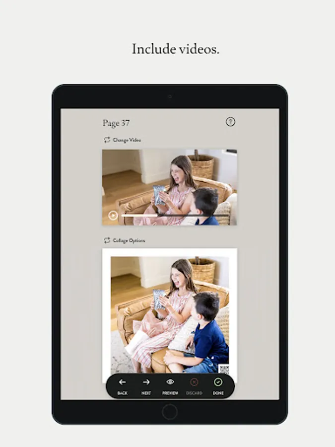 Story Snap lets you organize your videos in your photo book so you can preserve your favorite moments all in live action. The unique QR code in your photo book allows you to look back on your memories in vivid detail no matter how many years it has been.