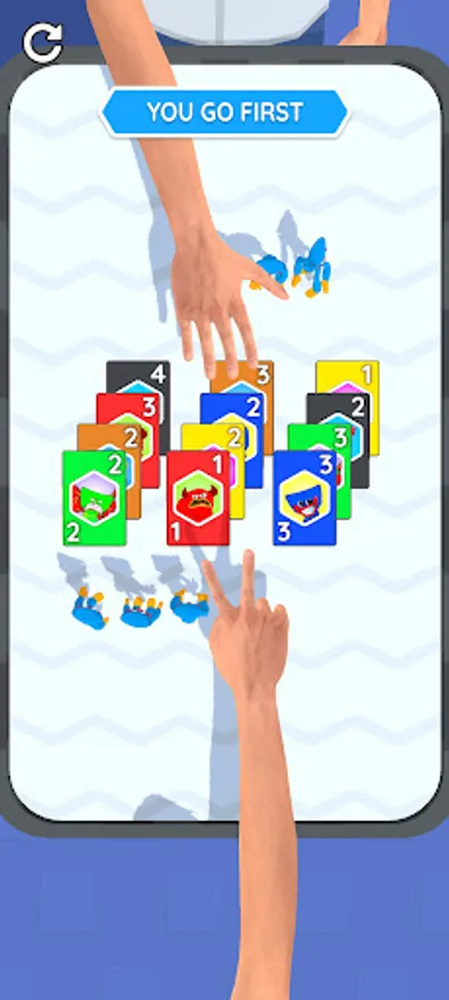 First, play rock-paper-scissors to decide to goes first, then increase the number of your monsters by picking up the best cards, make sure you have more monster than your opponent.