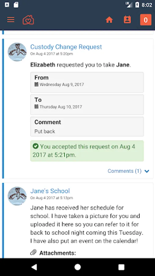 -Manage complex parenting schedules and formally request deviations/exchange days.