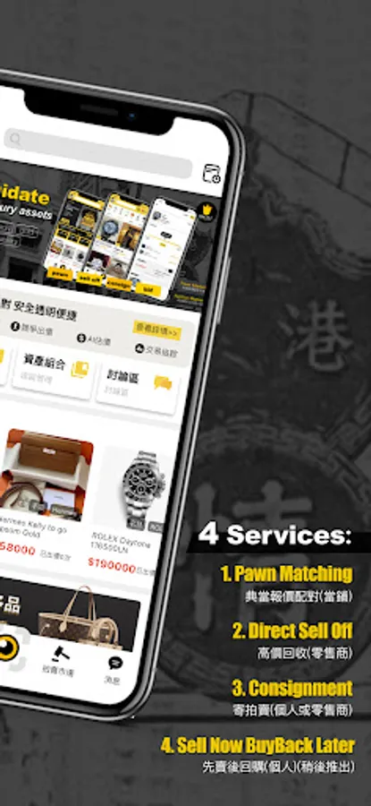 透過(i)典當抵押、 (ii)高價回收、(iii)寄賣及(vi)先賣後贖回極速套現您的閑置二手奢侈品,並同時提供投資買賣機會。