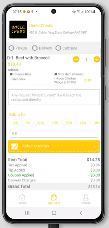 1. Get the Uncle Chen’s Online Order app and conveniently order from anywhere on your Android phone and tablet.