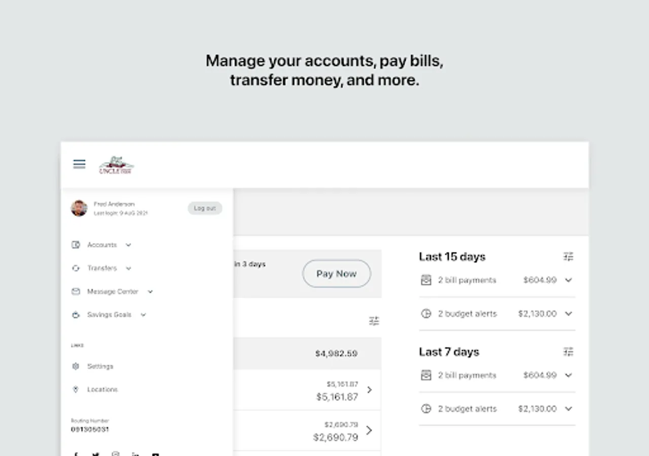 - Transfer Money within your accounts at UNCLE and to your external financial institutions