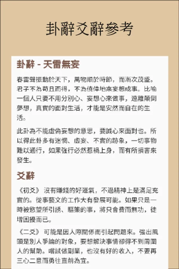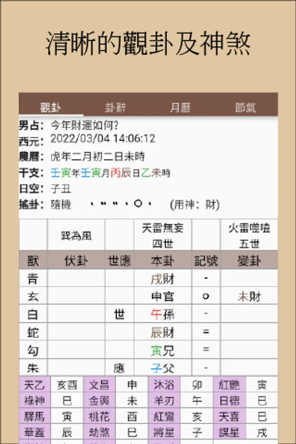 All in all, Liuyao divination is an ancient and interesting way of divination, which contains profound wisdom and philosophy, which can help us better understand ourselves and the world around us. Through the Liuyao divination app, we can easily experience this ancient art of divination and obtain spiritual guidance and inspiration.
