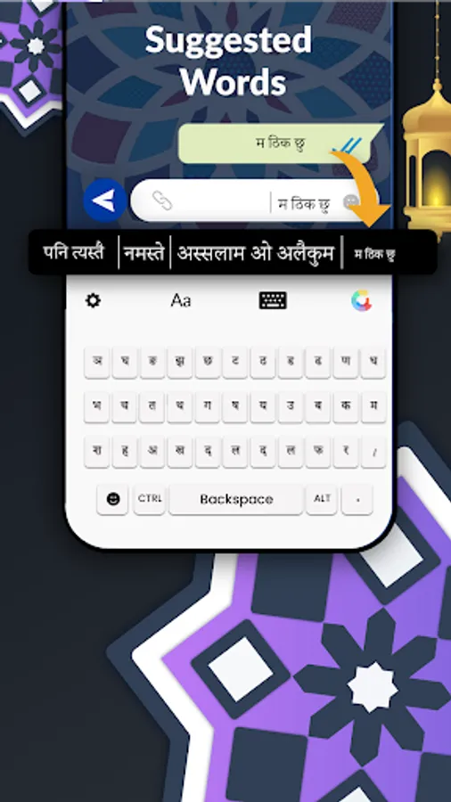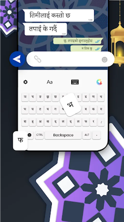 Type Nepali in this Nepali keyboard and convert into many language and chat with those friends who are not Nepali speaker. Nepali to Zulu and Nepali to Hindi also can be write with help of Nepali Language Keyboard. Too much Stickers have Nepali keyboard.