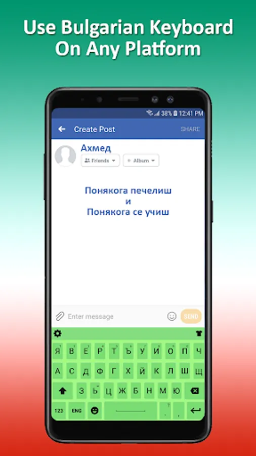 Bulgarian English Keyboard: Bulgarian Typing App is best Keyboard for typing in Bulgarian language. This unique keyboard enables a user to type message in Bulgarian language. New and easy two in one English, Bulgarian keyboard, YES! You can also type words in English at the same time without changing typing keyboard. This keyboard app is very easy and convenient to use. This is a complete Bulgarian best phonetic keyboard apps with all the Bulgarian letters, alphabets and fun fonts and special characters.