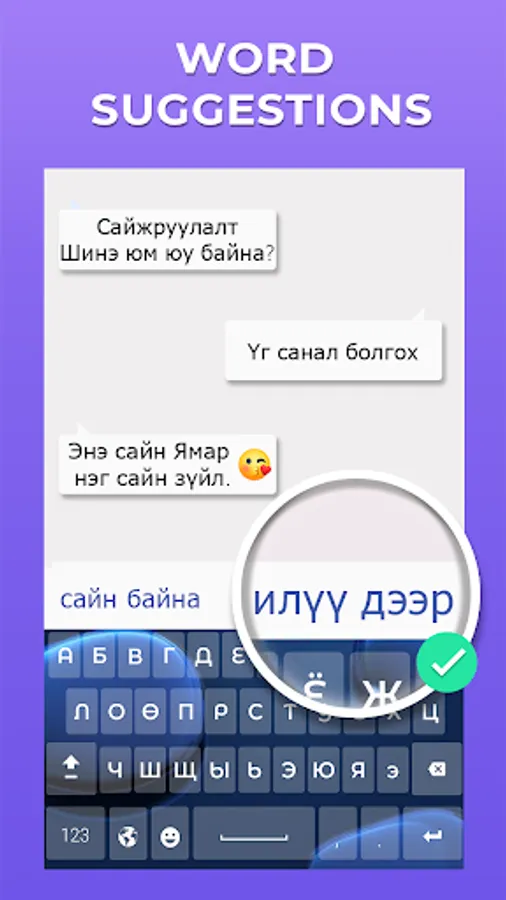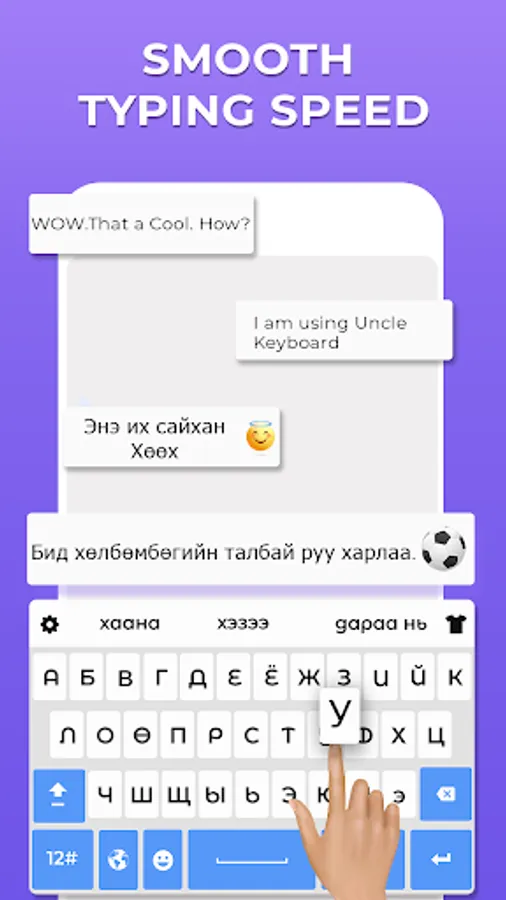 ⭐ Smart and smooth typing keys of Mongolia chat keyboard. ⭐ Translates Mongolian to English (vice versa) as well. ⭐ Eye-catching themes. ⭐ Scintillating typing experience ⭐ Easy to use User interface. ⭐ Smart suggestions and prediction through Mongolian dictionary & many more like Mongolian Cyrillic.